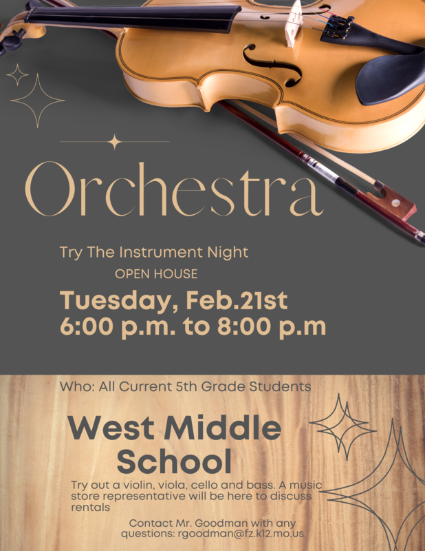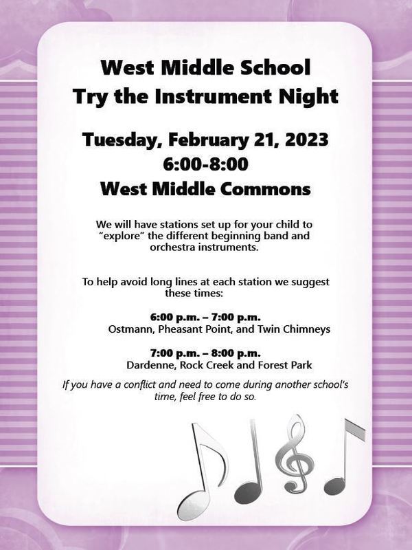 Meet with the band and orchestra teachers and try various instruments. A music store representative will be at WMS to discuss rentals.